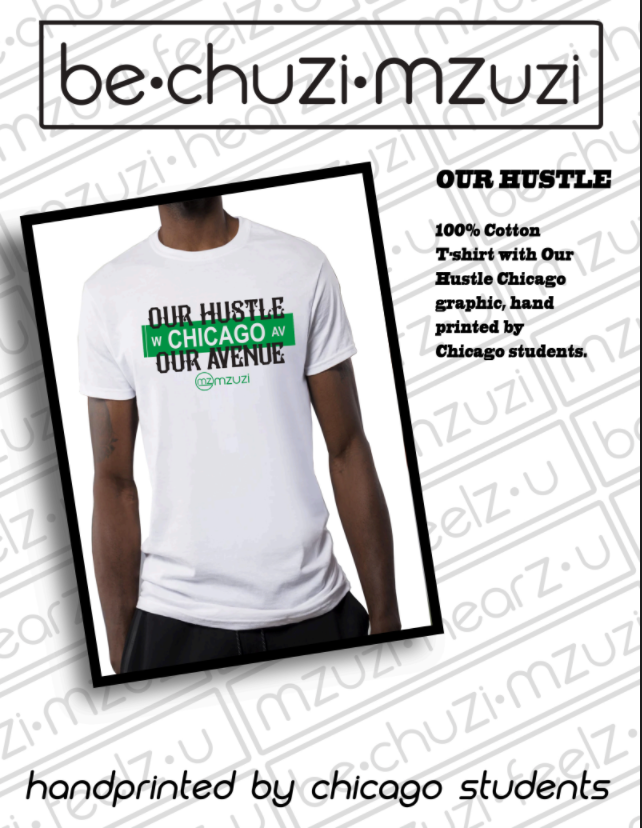 Be Chuzi MZUZI signature tees. Comfortable brands designed in the META Labs in Chicago and made by students!!!